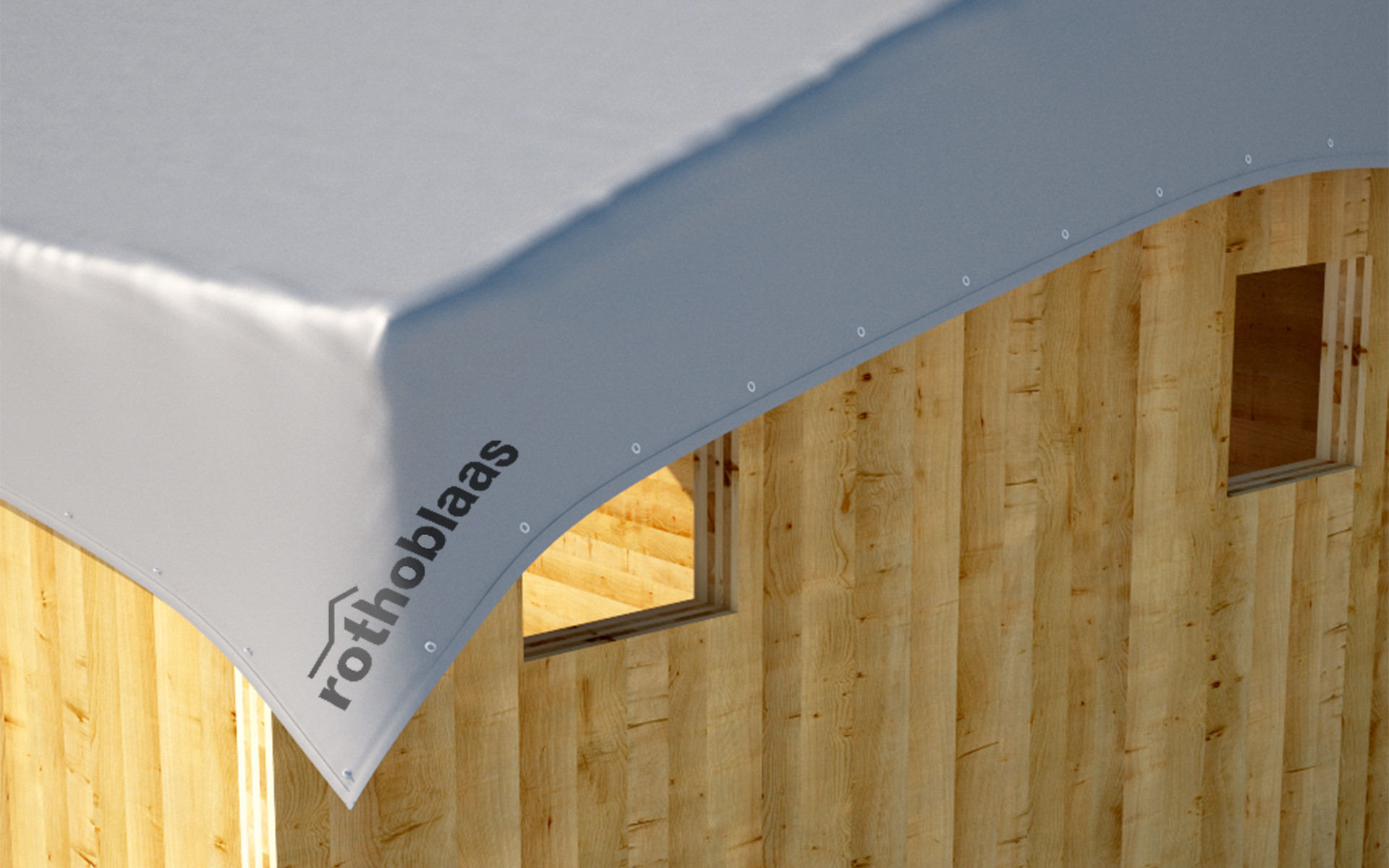 Para una protección completa en caso de fuertes lluvias antes de la impermeabilización definitiva de la cubierta, es necesario proteger la estructura con una lona de cobertura de gramaje alto, como CAP TOP, disponible en tres medidas estándares y también en medidas personalizadas. CAP TOP está dotado de un punto de elevación reforzado, que permite utilizar una grúa y, así, cubrir rápidamente la obra cuando empieza a llover. Con 600 g/m² (14 lbs/ft²), está fabricado con un material muy pesado y resistente, pero, en caso de fuertes vientos, debe fijarse al suelo por los ojales.