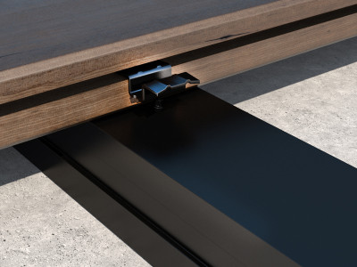 TVM es el conector para terrazas disponible en diferentes versiones y materiales, para aplicaciones con tablas de espesores diversos y juntas de ancho variable. En acero inoxidable asegura gran resistencia a la corrosión, típica de los ambientes agresivos.
