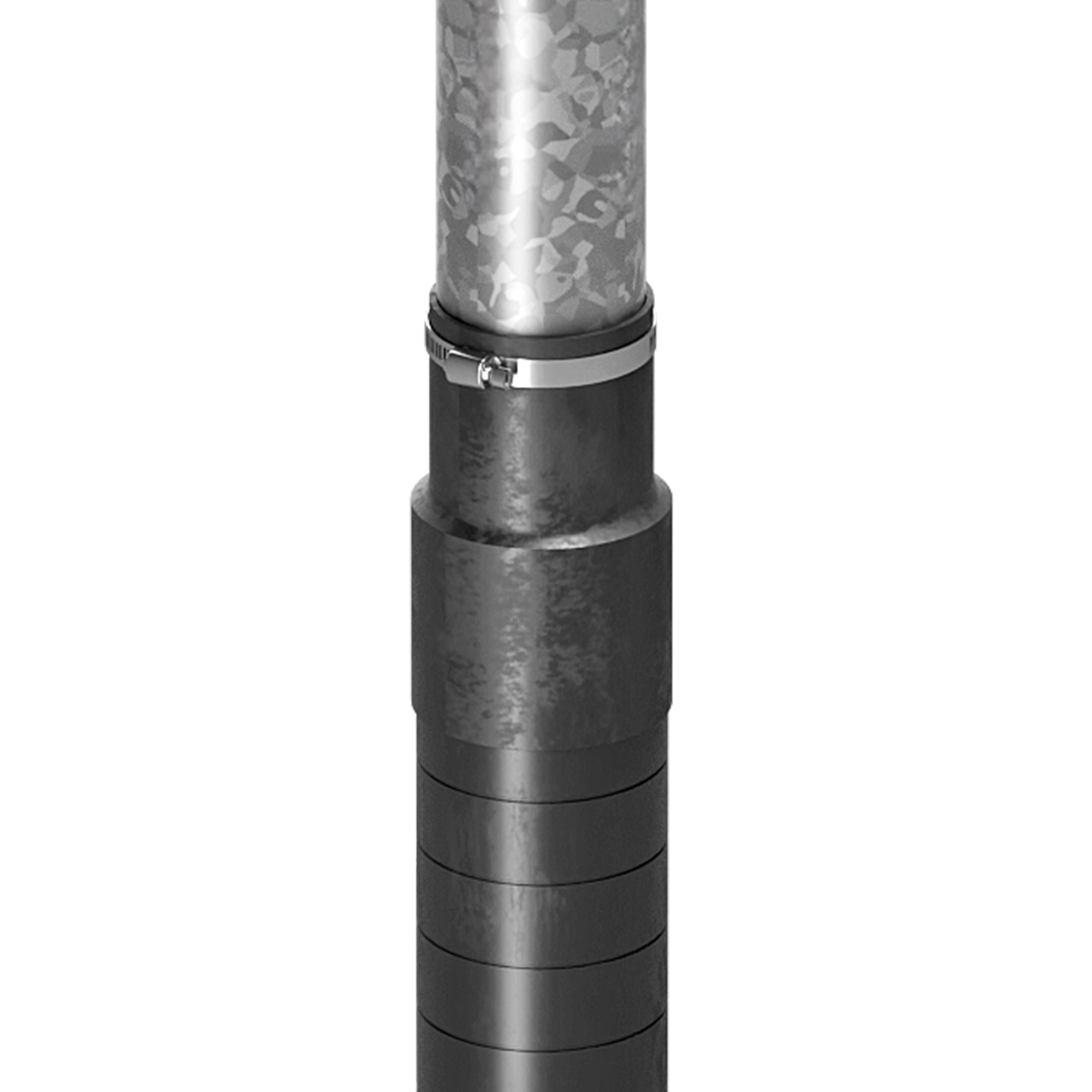 El manguito se fabrica en tres materiales, conglomerado bituminoso de pizarra, PVC o FPO/PP, para poder elegir el modelo más adecuado en función de la vaina impermeabilizante ya existente.
