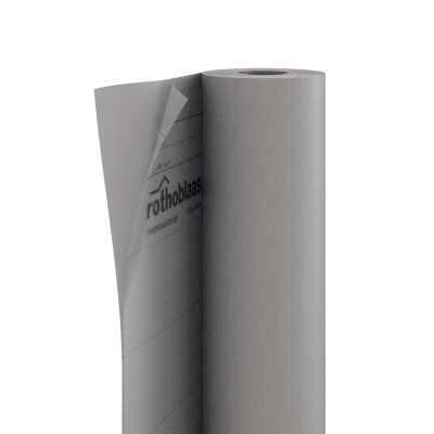 La lámina altamente transpirable TRASPIR ALU 120 se compone de dos capas: la superior de aluminio y la inferior de film transpirable de polipropileno. También está disponible en versión de 2,7 metros.