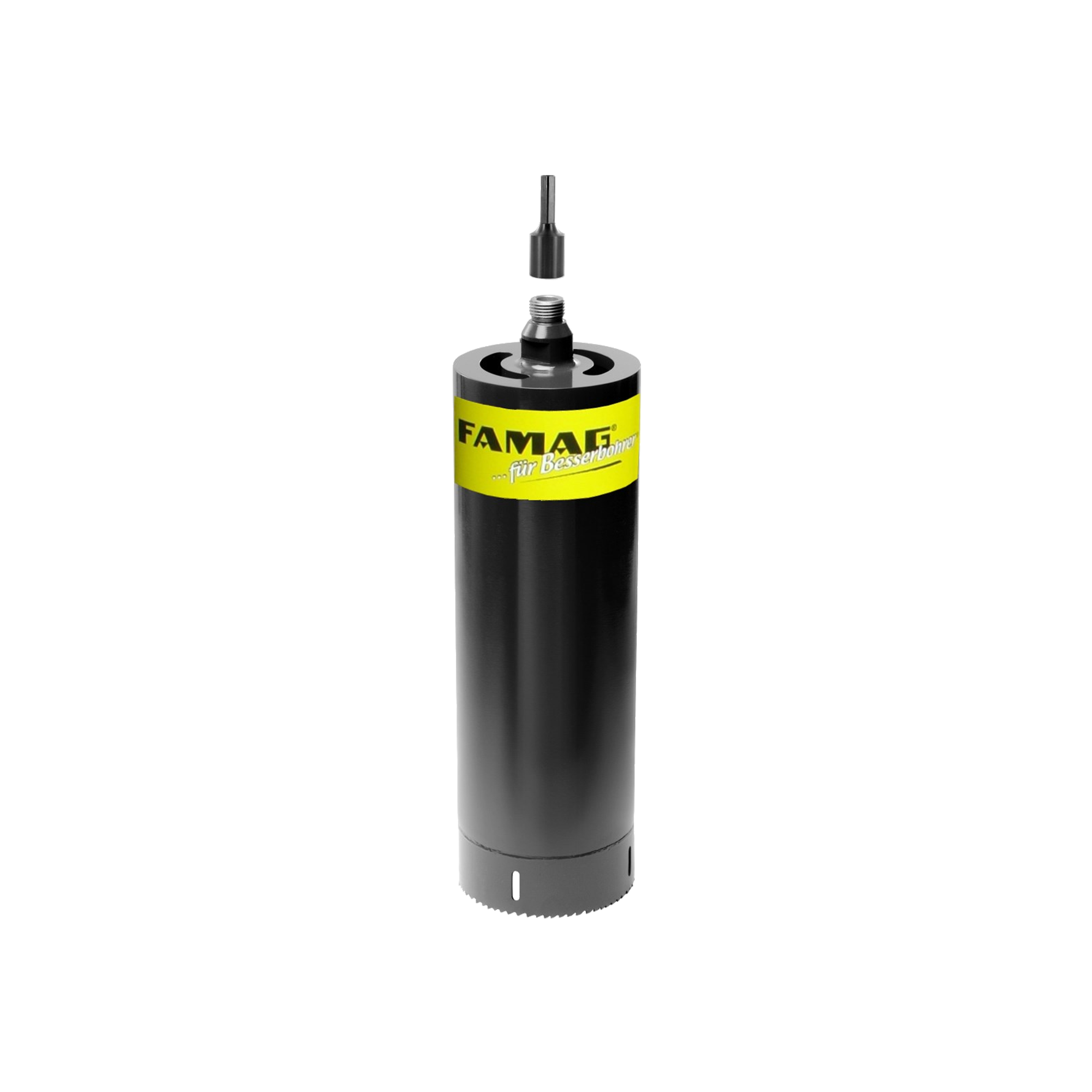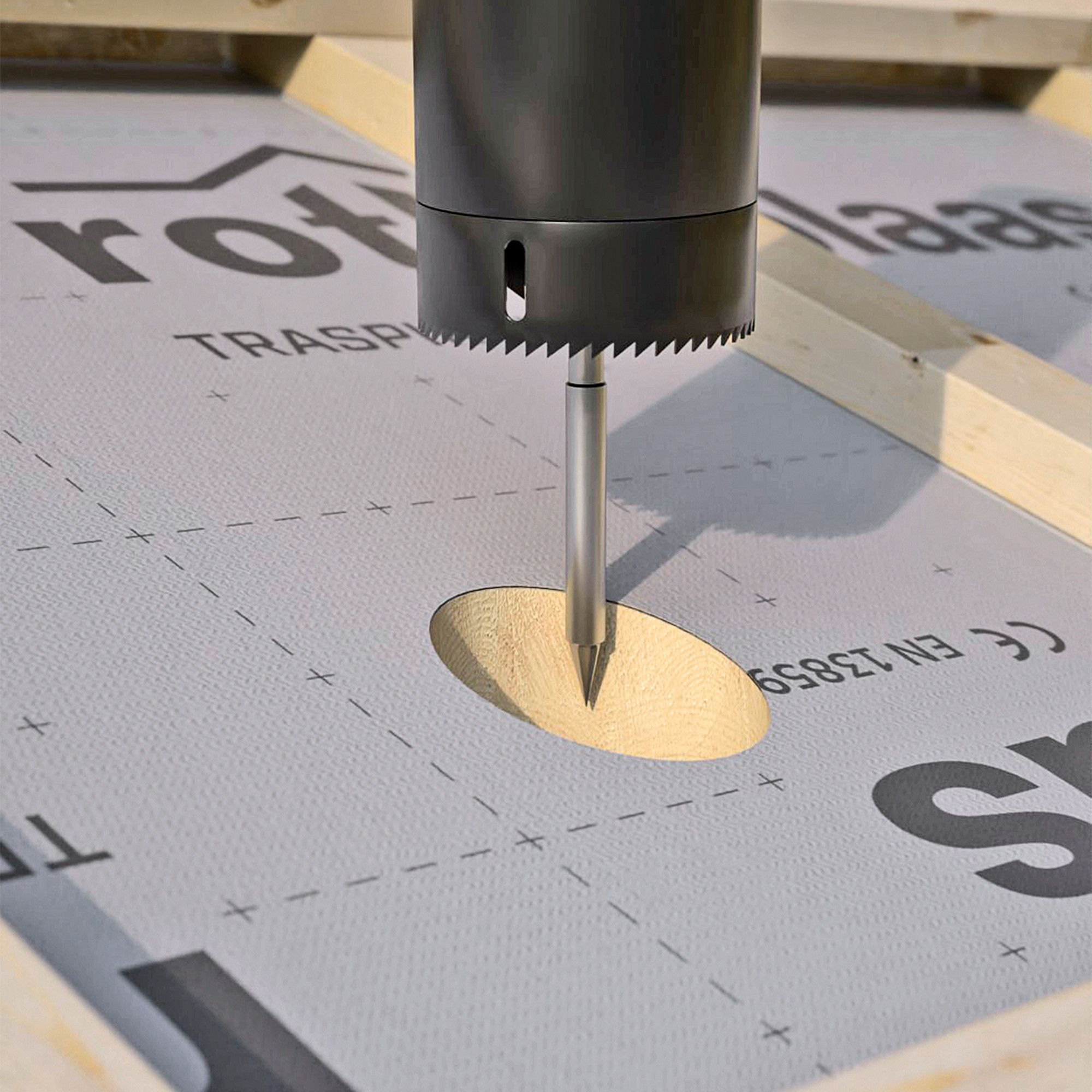 Corta cómodamente todos los materiales aislantes y la madera de las armaduras o paredes. Con un potente taladro de una mano, la fresa de corona se puede utilizar con una mano libre, sin herramientas adicionales. Número de revoluciones igual a aproximadamente 500 rpm.