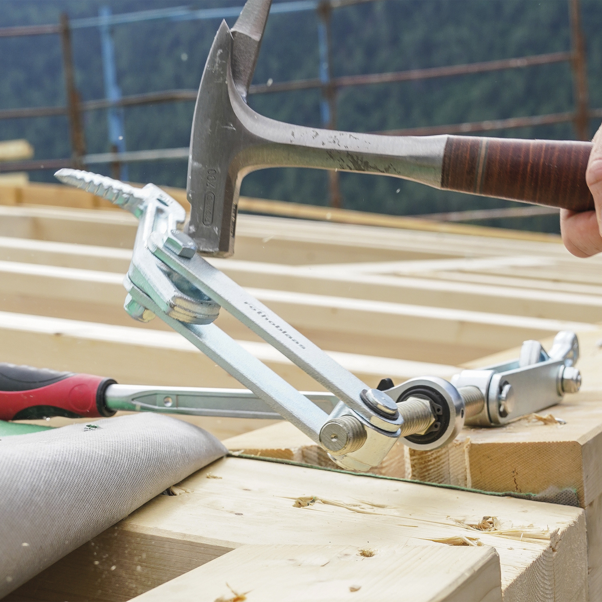 El tiravigas SKORPIO es la herramienta ideal para unir a presión elementos múltiples de madera o materiales de madera.