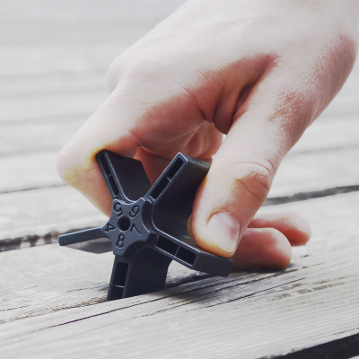 La estrella espaciadora STAR es un instrumento simple y práctico para crear distancias de dimensiones uniformes en la construcción de terrazas en madera.