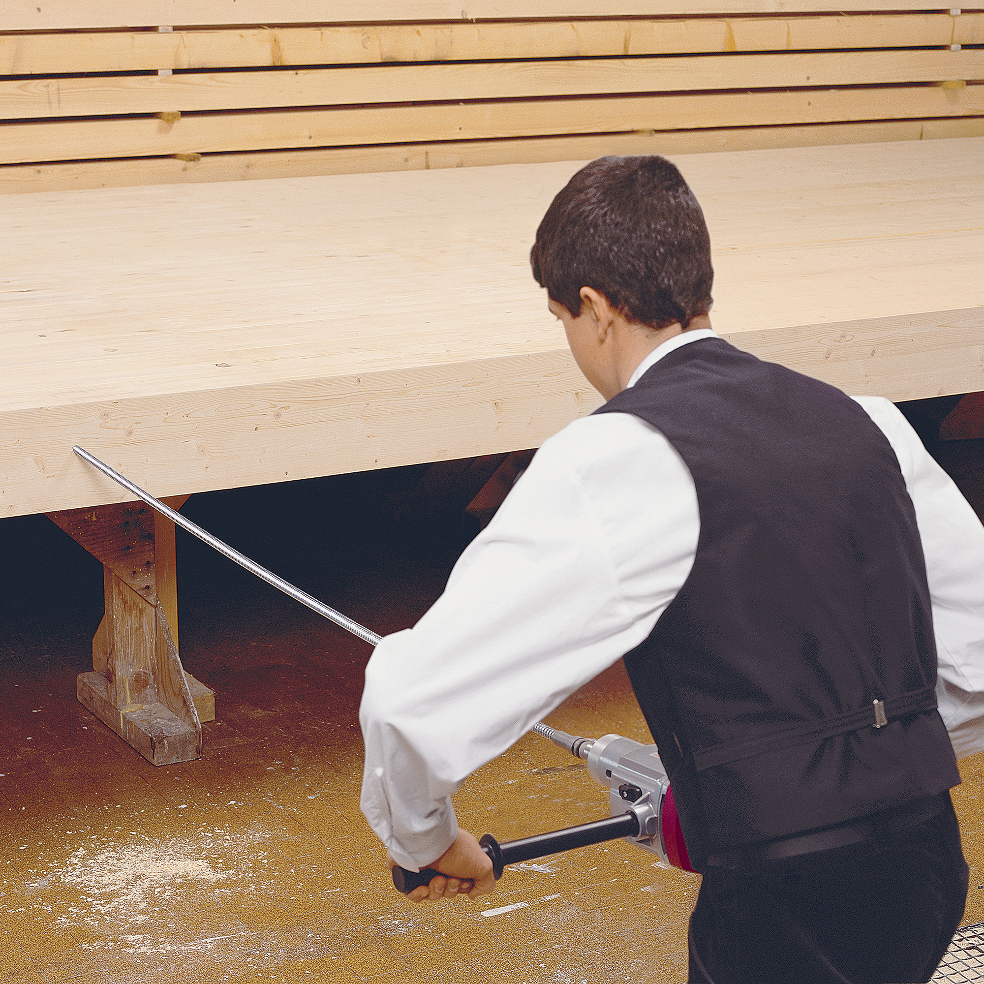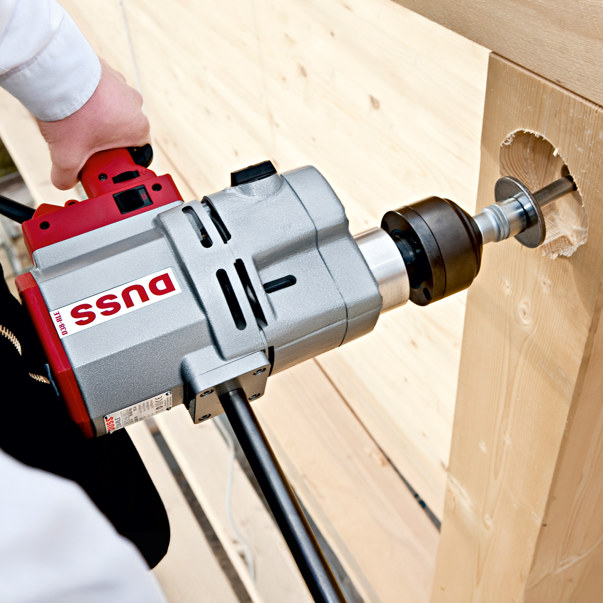 El taladro atornillador con 4 velocidades DUSS D 38 RLE lleva un motor potente y resistente de 2000 W, que permite alcanzar un par de apriete superior a 250 Nm a la 1a velocidad. No requiere mantenimiento ya que la transmisión de 4 velocidades se lubrica constantemente.