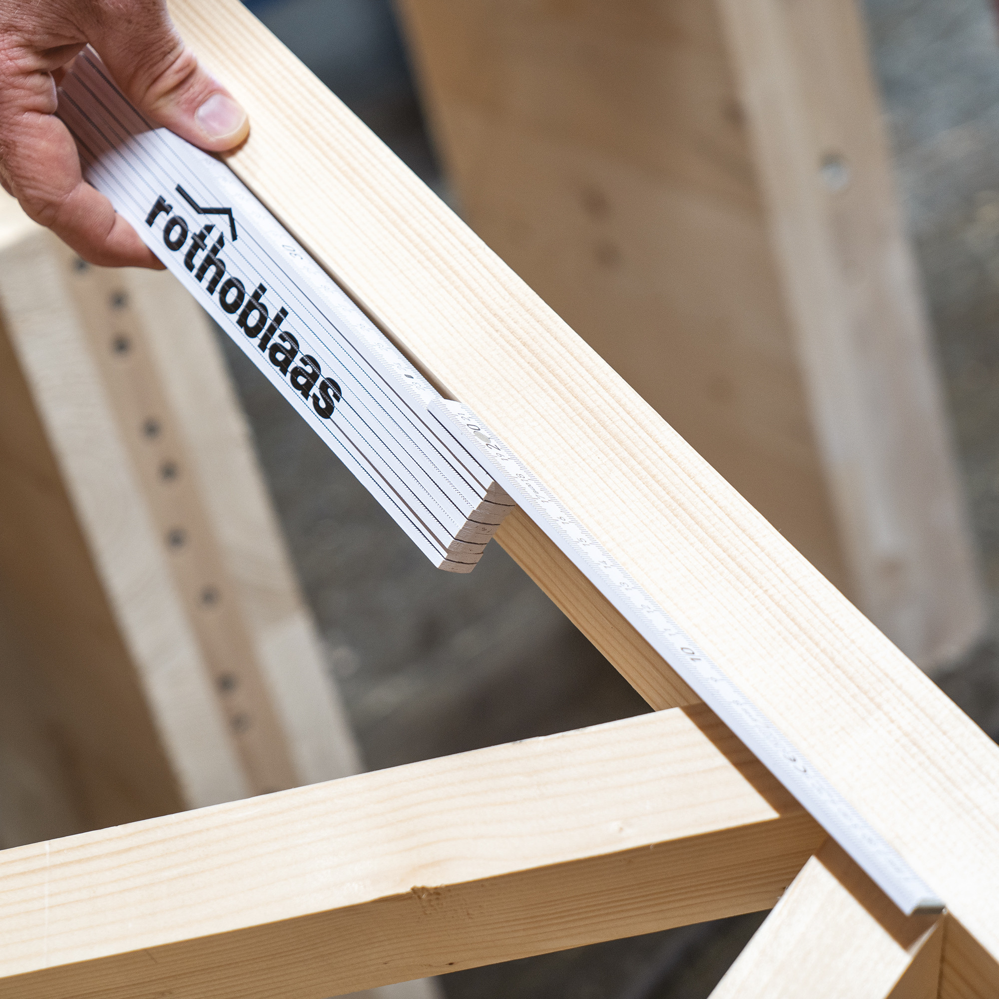 Regla plegable de carpintero formada por un grupo de varillas, unidas por sus extremos con charnelas, lo que permite plegar cada varilla sobre la contigua para facilitar el transporte; una vez alineadas y abiertas crean una regla de 2 metros.