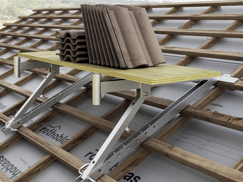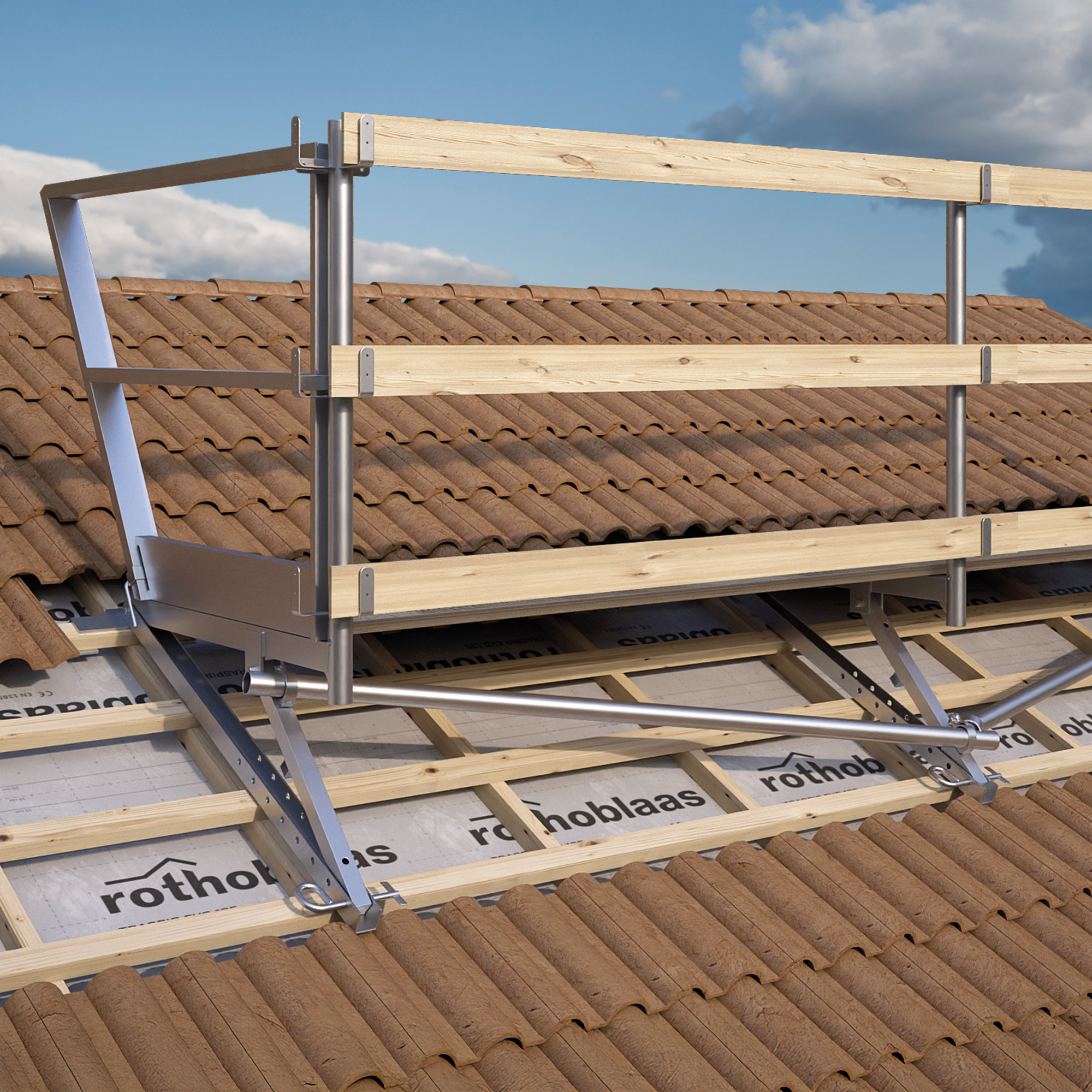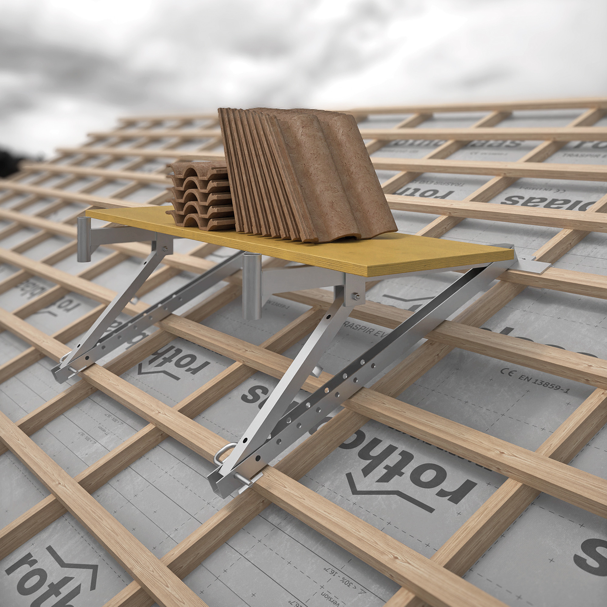 MULE es una plataforma de apoyo para las cargas que se puede usar como depósito provisional de materiales o máquinas en cubiertas inclinadas con ángulos comprendidos entre 15° y 60° (mín. 27 %).