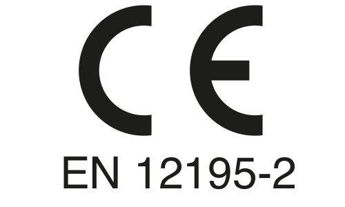 Tensor de acero galvanizado resistente a la corrosión con cierre de seguridad y tope para la palanca. Correa de tensión conforme a la norma europea EN 12195-2.