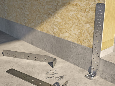 Gracias a los numerosos esquemas de clavado certificados y a los cinco modelos de angular, es posible disponer siempre de la mejor solución para paredes de timber frame o CLT, colocadas sobre lecho de mortero, viga de base o cadenas o dalas de hormigón de hasta 370 mm de espesor.