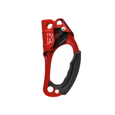 Dispositivo bloqueante para subida, hecho de aleación de aluminio. Disponible en versión tanto derecha como izquierda y se caracteriza por una excelente capacidad para bloquear en cuerdas especialmente embarradas gracias a las ranuras de evacuación presentes en la leva y en el lateral.