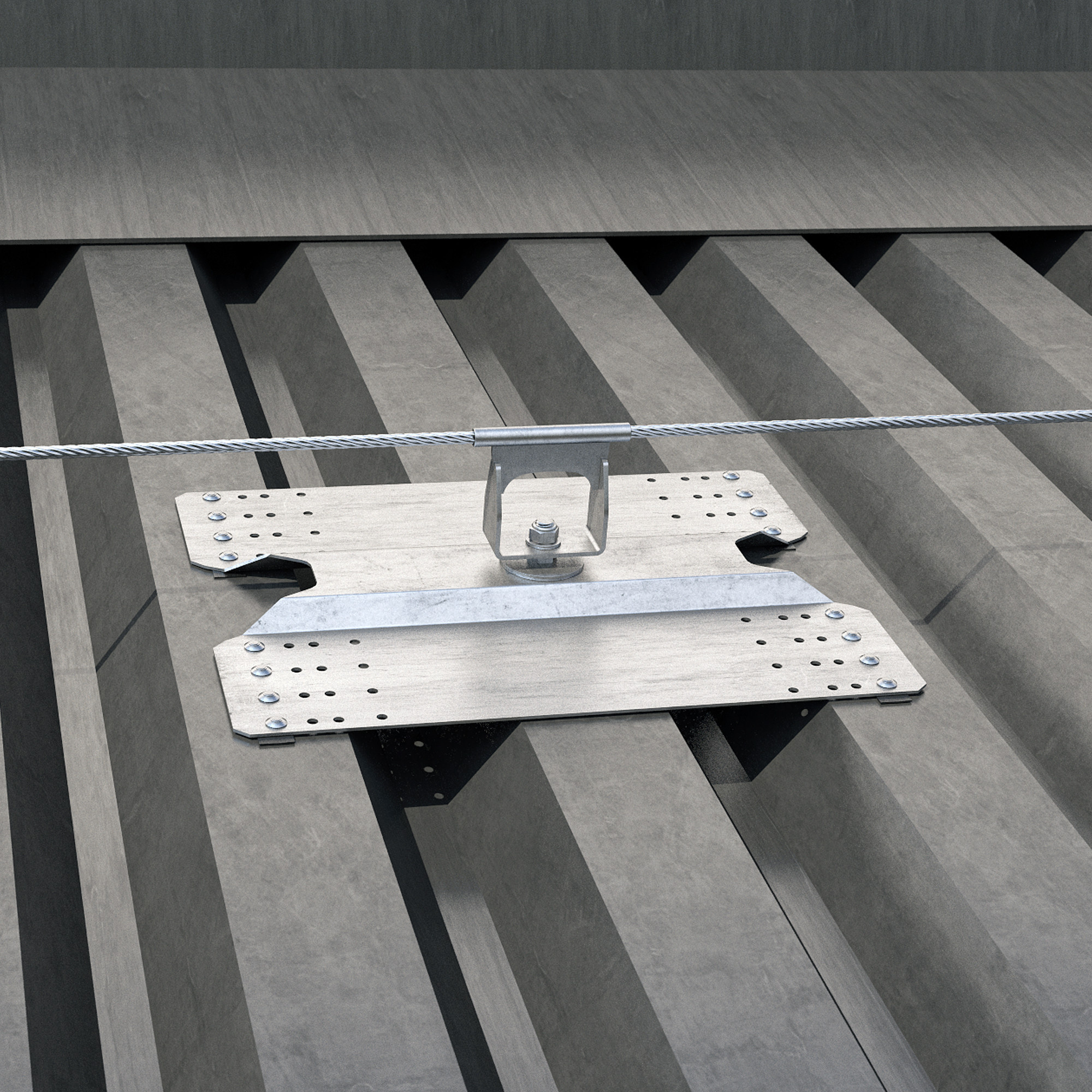 El soporte intermedio para líneas de vida sobre cubiertas de chapa trapezoidal. Para tus cubiertas planas o inclinadas elige SHIELD 2.0.