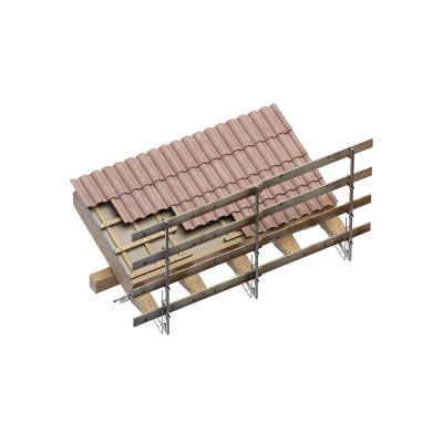 EDGE TEMP 2 es la baranda temporal para el frente de la cubierta. De acero galvanizado, se puede instalar en cubiertas con una pendiente máxima de 30°.