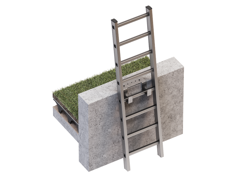 HANG PLAIN es el gancho permanente para escaleras, ideal para superficies planas, como vigas o muretes perimetrales. De acero galvanizado en caliente, posee numerosos agujeros para una fijación versátil.