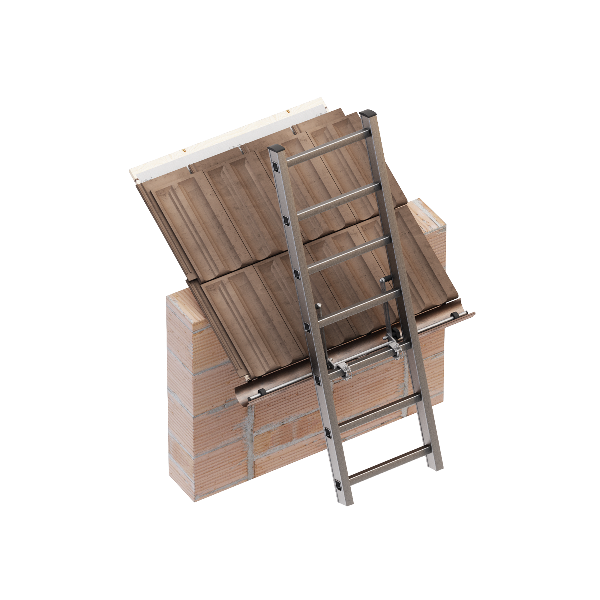 Está formado por un tubo horizontal de 1 m de ancho y por dos brazos cuya inclinación se puede regular para garantizar un buen apoyo. Sistema universal de enganche a los peldaños de las escaleras. Incluye un perno de seguridad para bloquear el sistema lo que garantiza la perfecta fijación de la escalera.