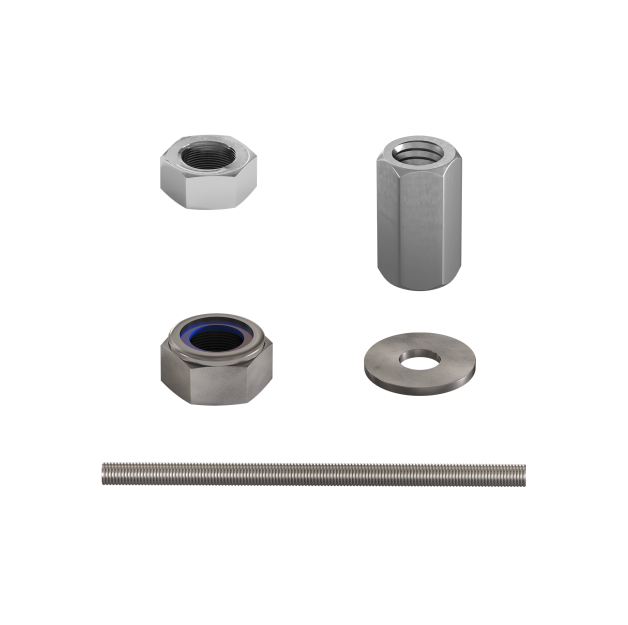 De acero inoxidable, se adapta a cualquier tipo de estructura gracias a la varilla roscada disponible en diferentes longitudes.