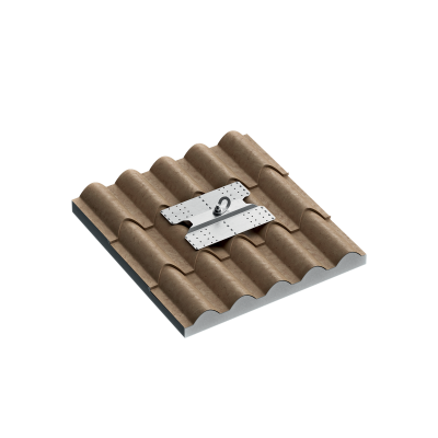 AOS01 combinado con el soporte COPPO representa el sistema ideal para crear un punto de anclaje en cubiertas de panel sándwich imitación teja. Gracias a la conformación en una única placa, el montaje es especialmente rápido.