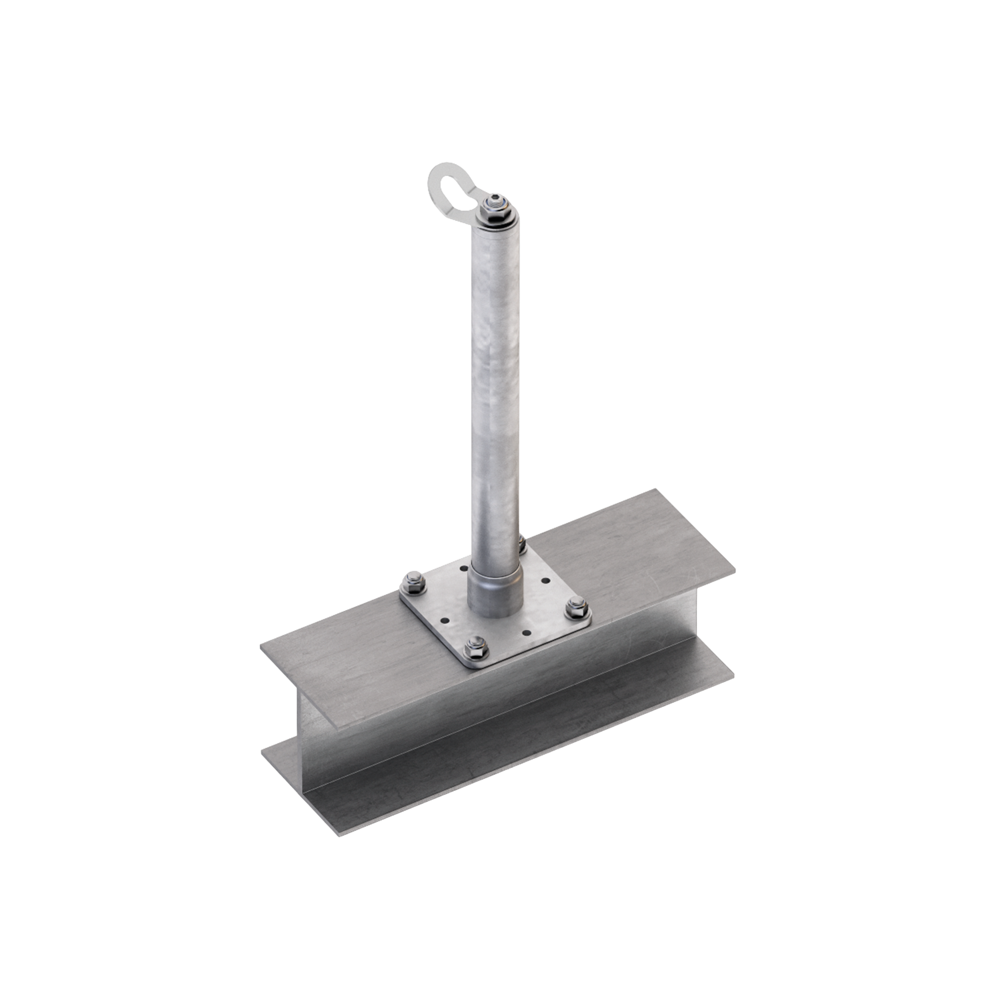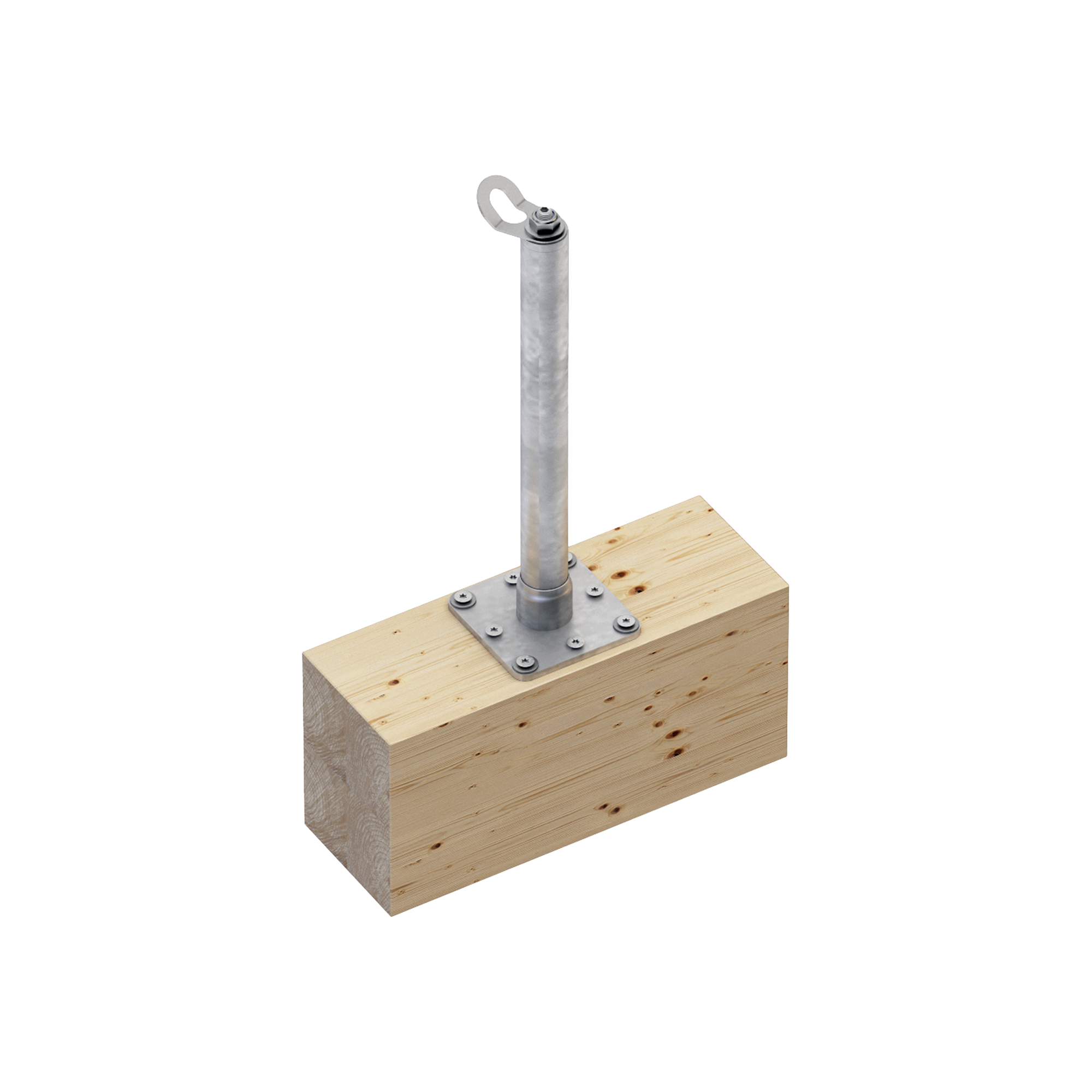 El soporte para punto de anclaje AOS01 se puede instalar en madera, hormigón y acero y soporta tanto las solicitaciones en el plano (360°) como las fuerzas de extracción. Altura del soporte comprendida entre 300 y 600 mm para adaptarse a los distintos espesores de las cubiertas.