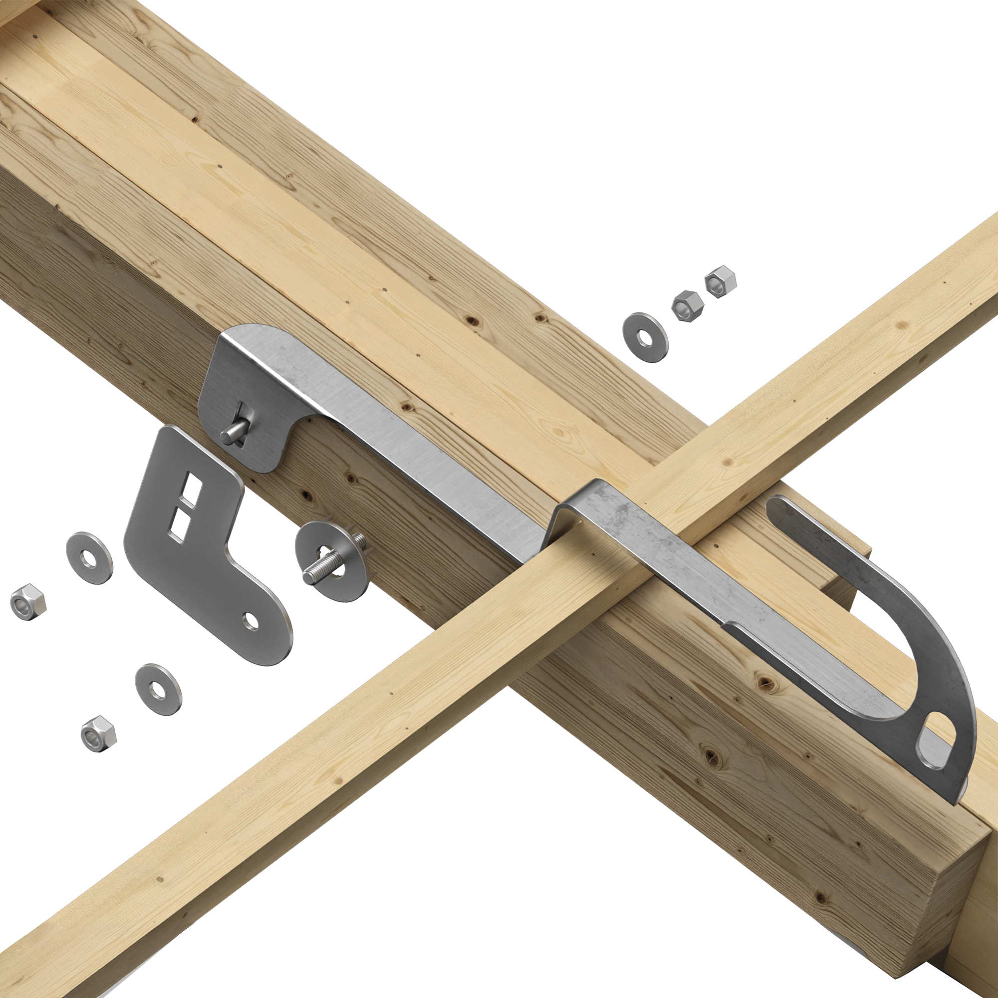 El punto de anclaje SLIM es la solución ideal para su instalación sobre vigas de madera de sección reducida, a partir de un mínimo de 36 x 68 mm hasta tamaños ilimitados. De acero inoxidable, se puede utilizar en cubiertas inclinadas sea como punto de anclaje único que como gancho de escalera.
